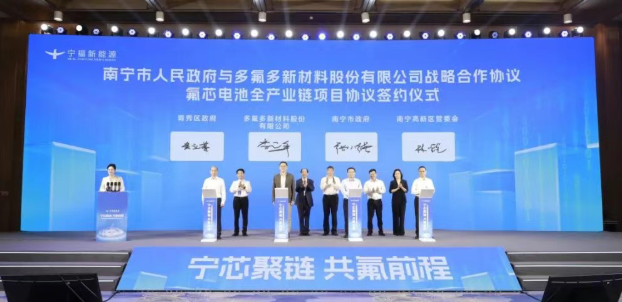 南宁市委副书记、市长侯刚在致辞中指出,南宁正以政策红利为笔,为新能源产业绘制发展蓝图。从产业定位到资源协同,当地将新能源作为链接国内国际双循环的重要抓手,为多氟多“芯 — 链 — 场景” 生态落地提供政策沃土。市委常委、副市长张小强则以招商宣讲为窗,展现南宁 “筑巢引凤” 的诚意 —— 从招商引智到环境优化,一系列务实举措让 “产业聚链成群” 的活力在邕城充分迸发,为宁福新能源等企业搭建起创新发展的广阔舞台。