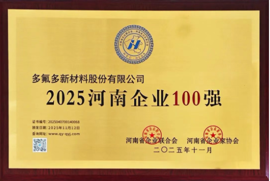 喜讯 | 多氟多蝉联“河南企业百强”等多项荣誉